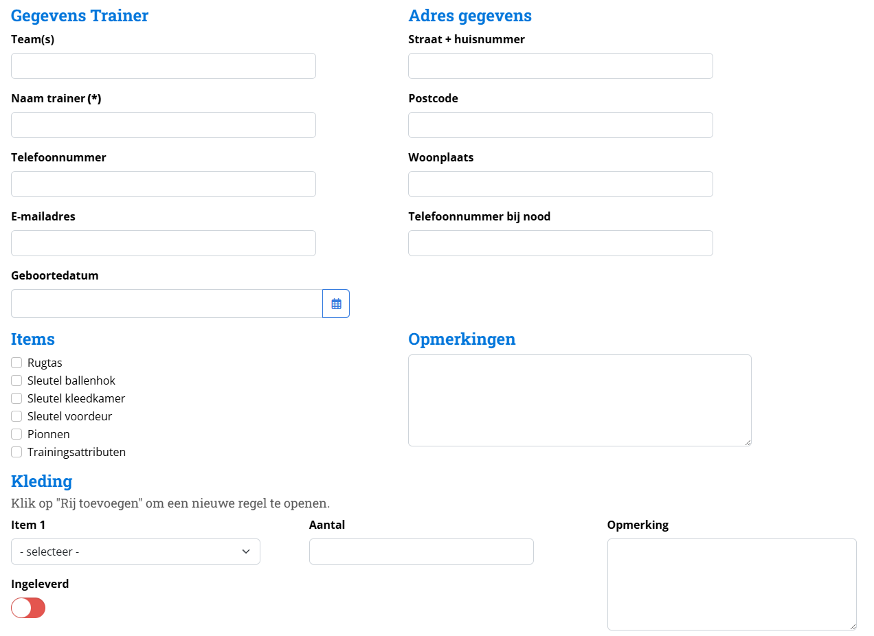 De invoervelden binnen deze formulieren kun je laten aanpassen door Kledingregistratie.nl. Wil je