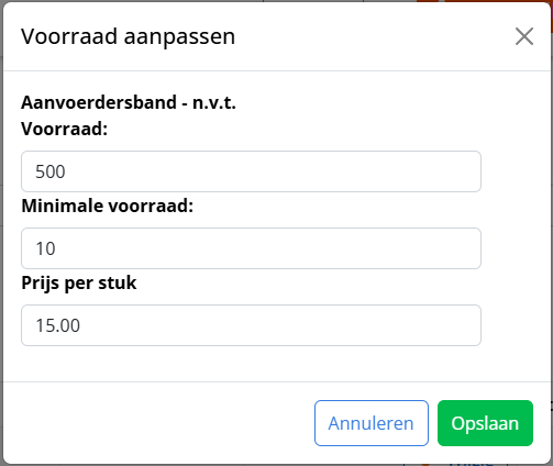 In het voorraadbeheer wordt het item, de maat en de staat van het item automatisch uit het Stanno Kleding Systeem opgehaald. Is een item, bijvoorbeeld een Presentatiepak maat S, nog nooit uitgeleend, dan zal deze dus ook niet in het voorraad systeem voorkomen.